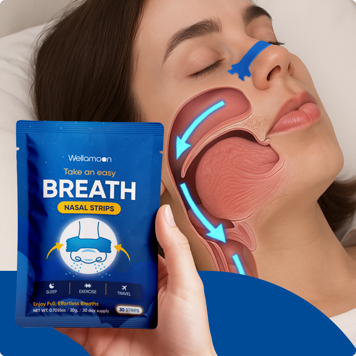 The Wellamoon Sleep Patches, Nasal Strips, Mouth Tape, and Sleep Spray are designed to support your evening routine and help you wake up feeling refreshed.